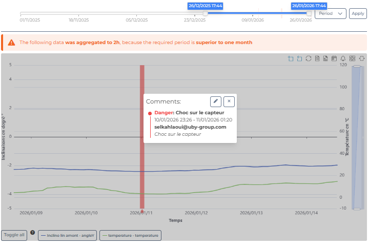 Ajoutez des commentaires directement sur les graphiques pour faciliter l’interprétation en équipe et le suivi des évènements.